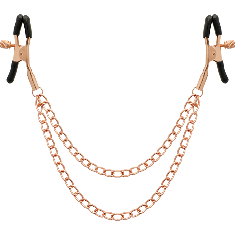 These chain nipple clamps from Coquette Chic Desire! They are unisex and very easy to use. The clips and chain are made of nickel-free metal. They do not contain nickel. You can use the nipple clamps for your naughty secrets or as a stimulating accessory while penetrating your lover.