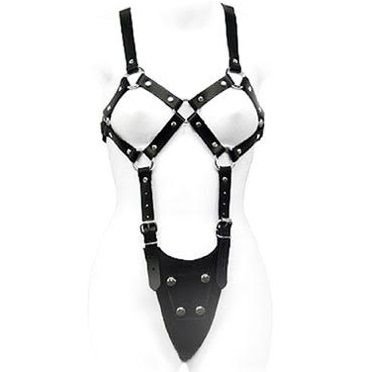 Practice BDSM with this leather harness for women, completely linked from top to bottom and 100% adjustable.
