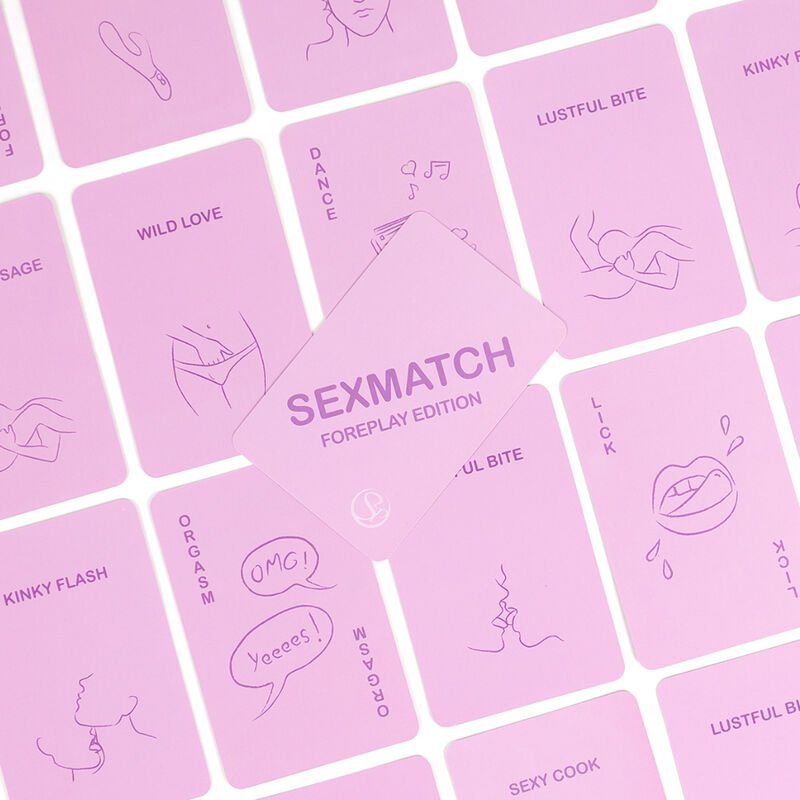 Sexmatch Foreplay Edition es el juego de cartas para parejas en el que debes hacer coincidir ilustraciones y palabras realizando desafÃos hasta que uno de los dos se quede sin cartas. El juego contiene 89 cartas de juego (81 cartas y 8 comodines) y 1 carta guÃa.