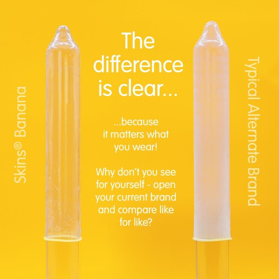Delight your taste buds with the taste sensation of Skins Banana Condoms! 4 banana-flavored condoms individually wrapped for easy use. Look good! Feel good! Enjoy naturally better sex with a condom that feels like a part of you. So transparent and thin it feels like a second skin. Skins condoms allow you to enjoy yourself safely without sacrificing pleasure!